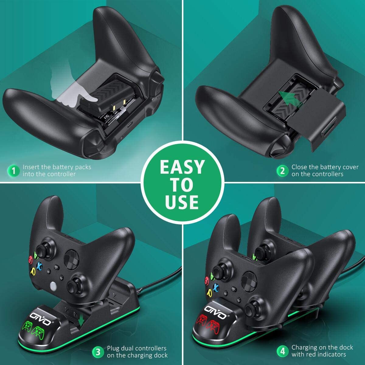 • Зарядная станция Xbox Series S/X - Xbox One Charging Dock + 2 АКБ 1300 mAh Black IV-X131 OIVO
