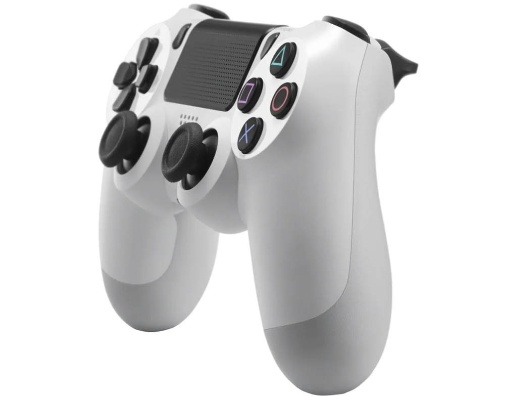 Sony DualShock 4 V2 (белый ледник) - фирменный беспроводной геймпад от Sony для PlayStation 4 (PS4). Вторая версия Sony DualShock 4 отличается от предшествующей появившейся дополнительной световой индикацией, обновленным корпусом с более приятной на ощупь шероховатой структурой, а также более износостойким резиновым покрытием аналоговых контроллеров (стиков).